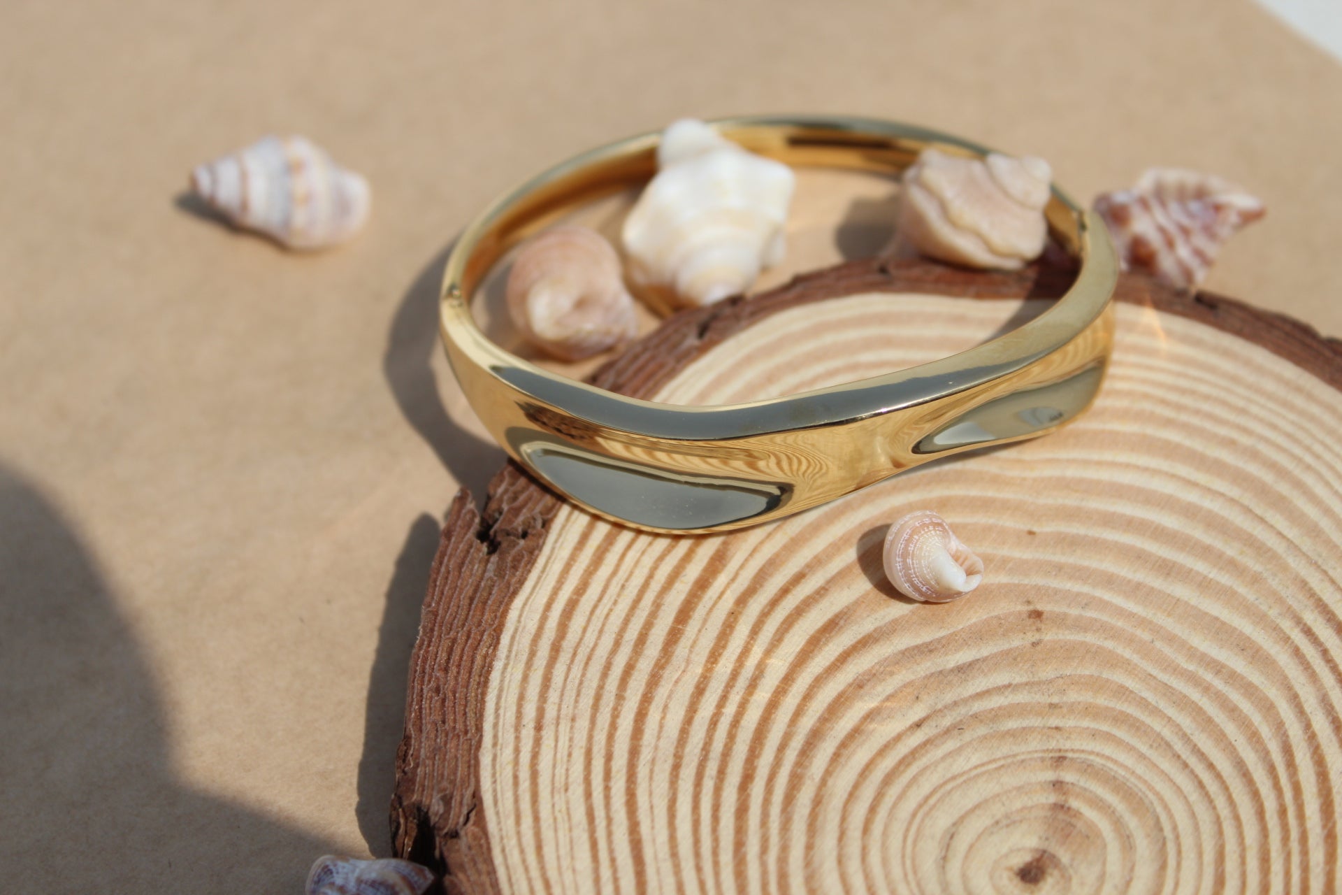 The Golden Mirage Bracelet wraps your wrist in a smooth, reflective glow — inspired by the shimmering beauty of desert horizons.