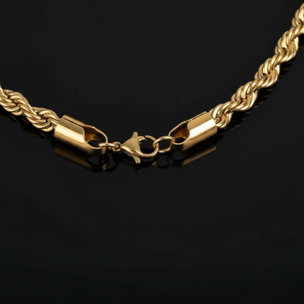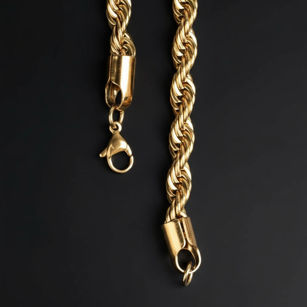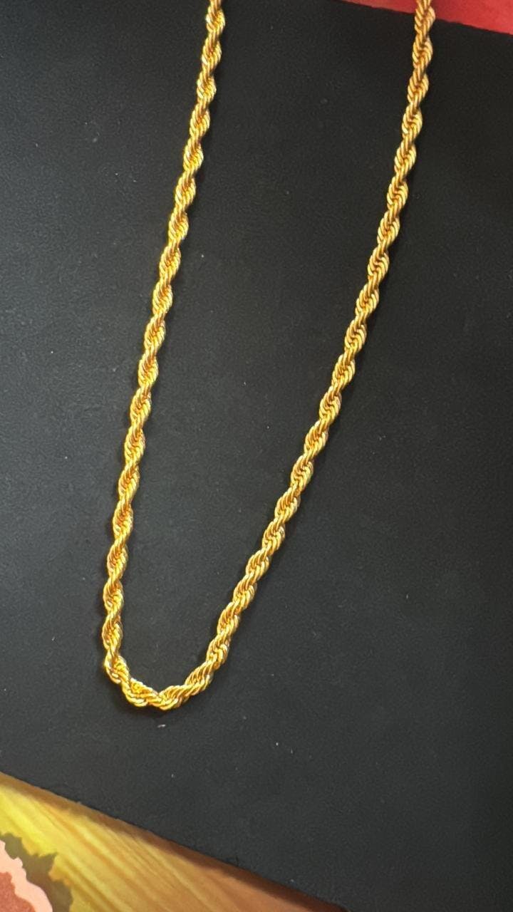 Add a touch of luxury to your style without spending thousands. This Royal Twist Chain shines just like real gold, Its twisted rope design gives it a bold, masculine look that fits perfectly with any outfit — casual or classy.