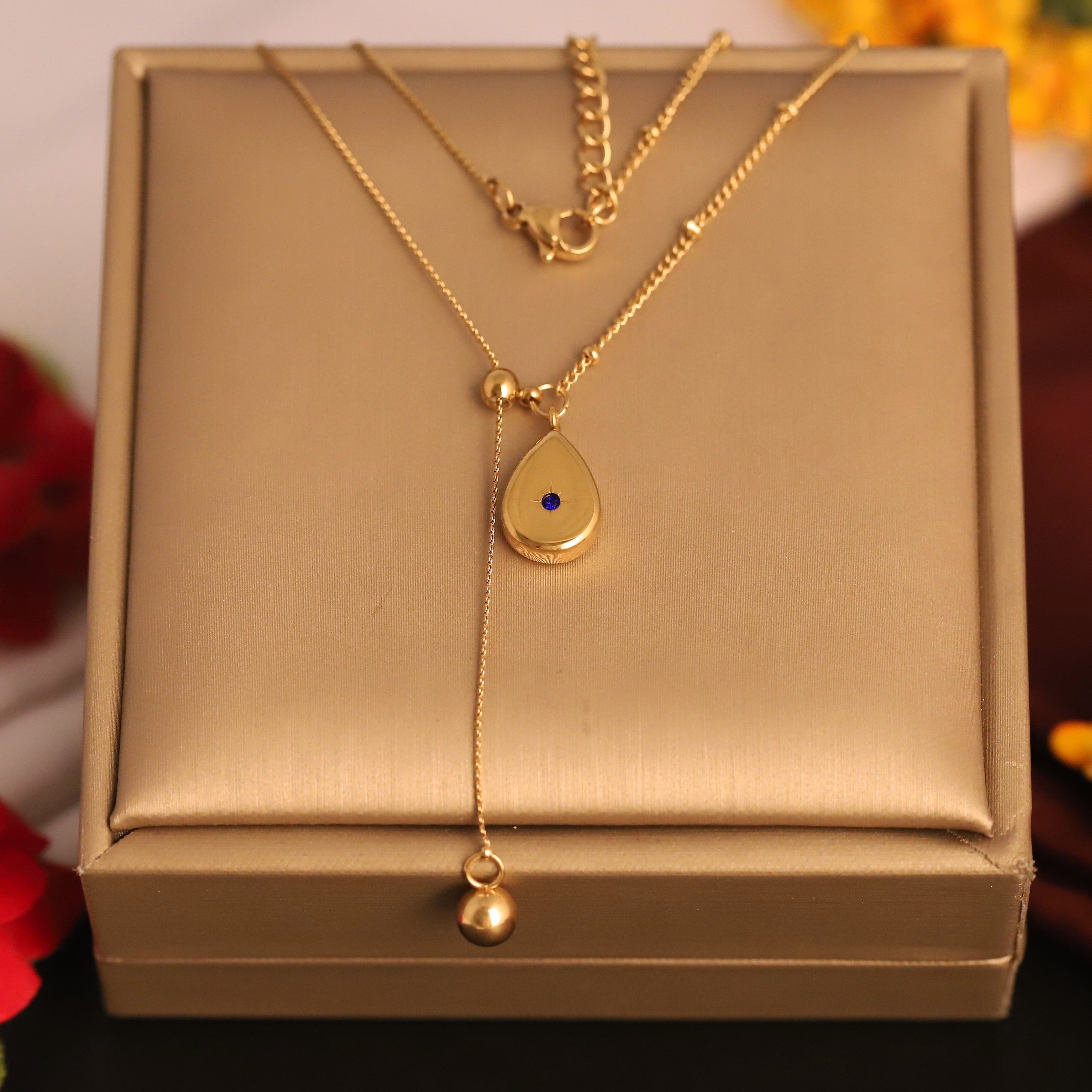 Sapphire Drop is a graceful blend of elegance and minimalism. This anti-tarnish necklace features a sleek gold teardrop with a delicate blue stone at its center — a subtle nod to strength and poise. Designed for women who lead with quiet confidence.