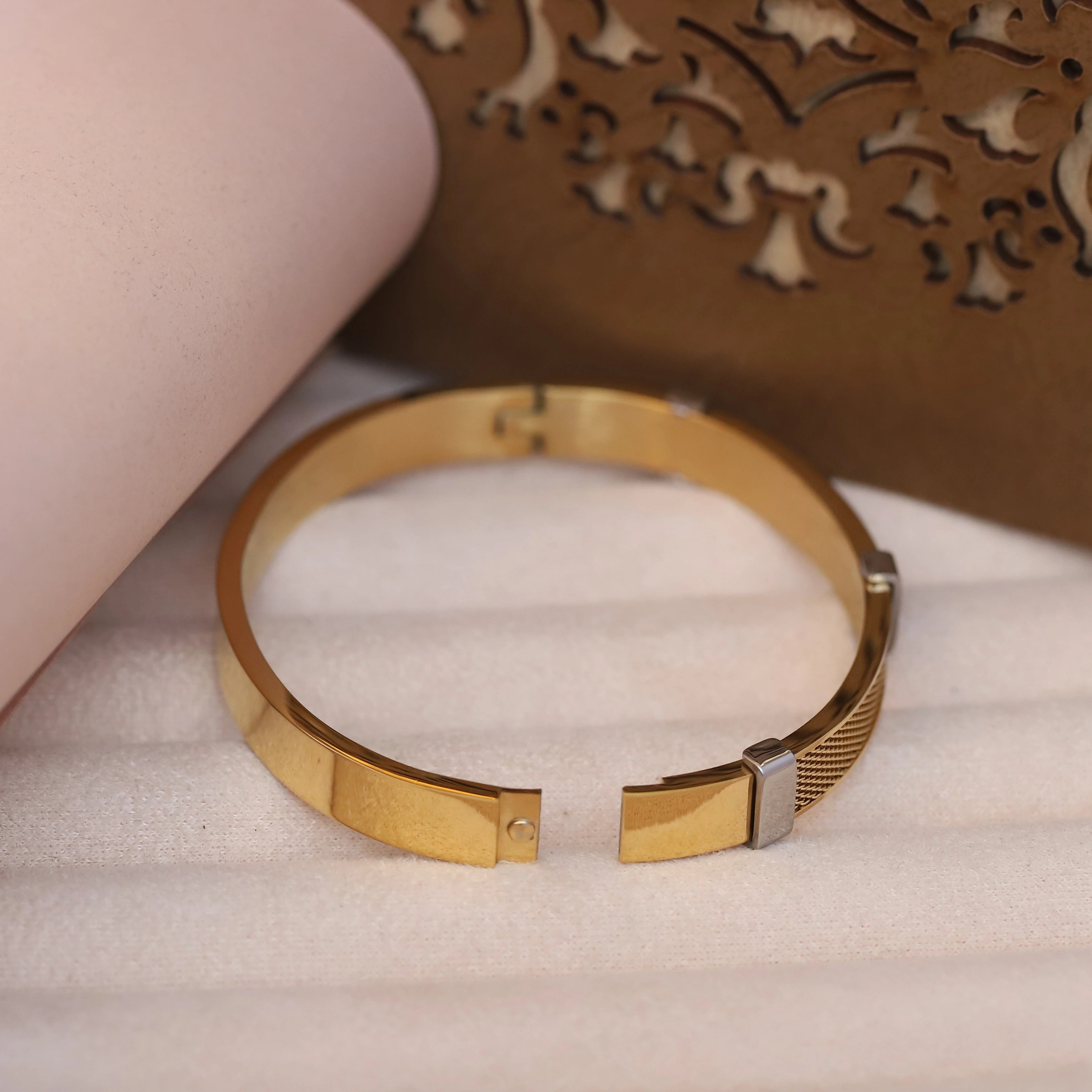 Refined elegance meets modern design in the Silver Mist Mesh Cuff. Crafted with a cool-toned silver mesh centerpiece bordered by a radiant gold-tone stainless steel band, this bracelet delivers a clean and confident look. Anti-tarnish, durable, and lightweight—ideal for daily wear or to elevate any outfit with minimal effort.