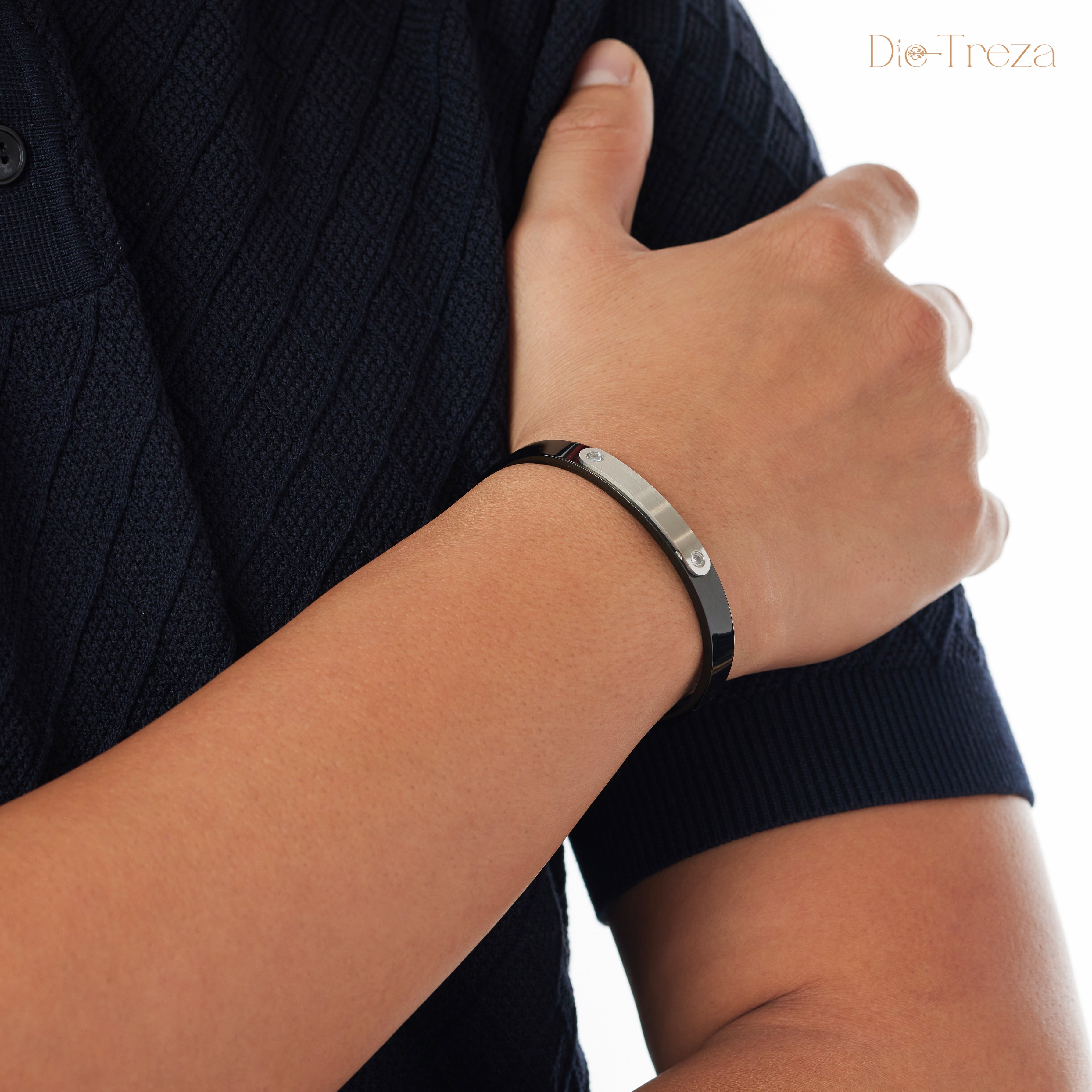 Elevate your style with the Steel & Black Dual Tone Bracelet, crafted from premium stainless steel for a sleek and masculine look. Designed with a polished silver base and accented with black detailing, this bracelet is both anti-tarnished and long-lasting, making it ideal for everyday wear. The secure clasp ensures a comfortable fit, while the modern dual-tone design adds a bold touch to your casual or formal outfits.