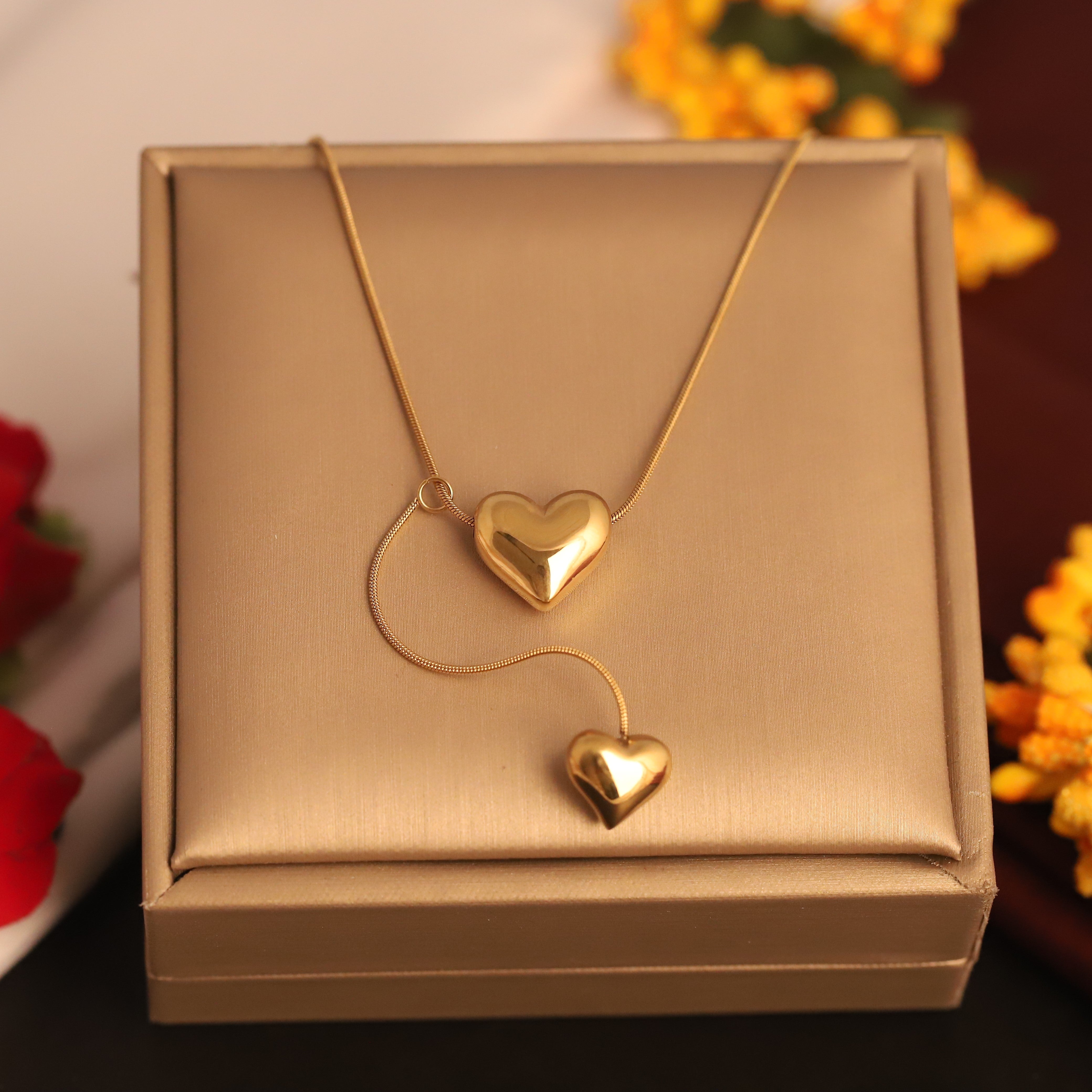 Celebrate connection and warmth with the Twin Hearts Pendant – a glossy gold-tone necklace featuring two heart charms delicately linked by a fluid chain. Crafted from anti-tarnish materials, it's the perfect piece for women who love minimal yet meaningful jewelry. Symbolizing love and strength, it's ideal for everyday wear or heartfelt gifting.